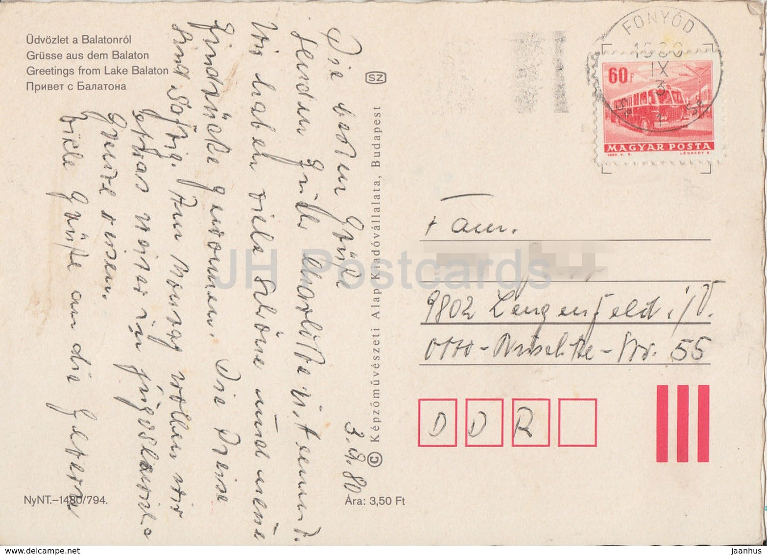 Salutations du lac Balaton - planche à voile - hôtel - bateau à voile - multiview - 1980 - Hongrie - utilisé