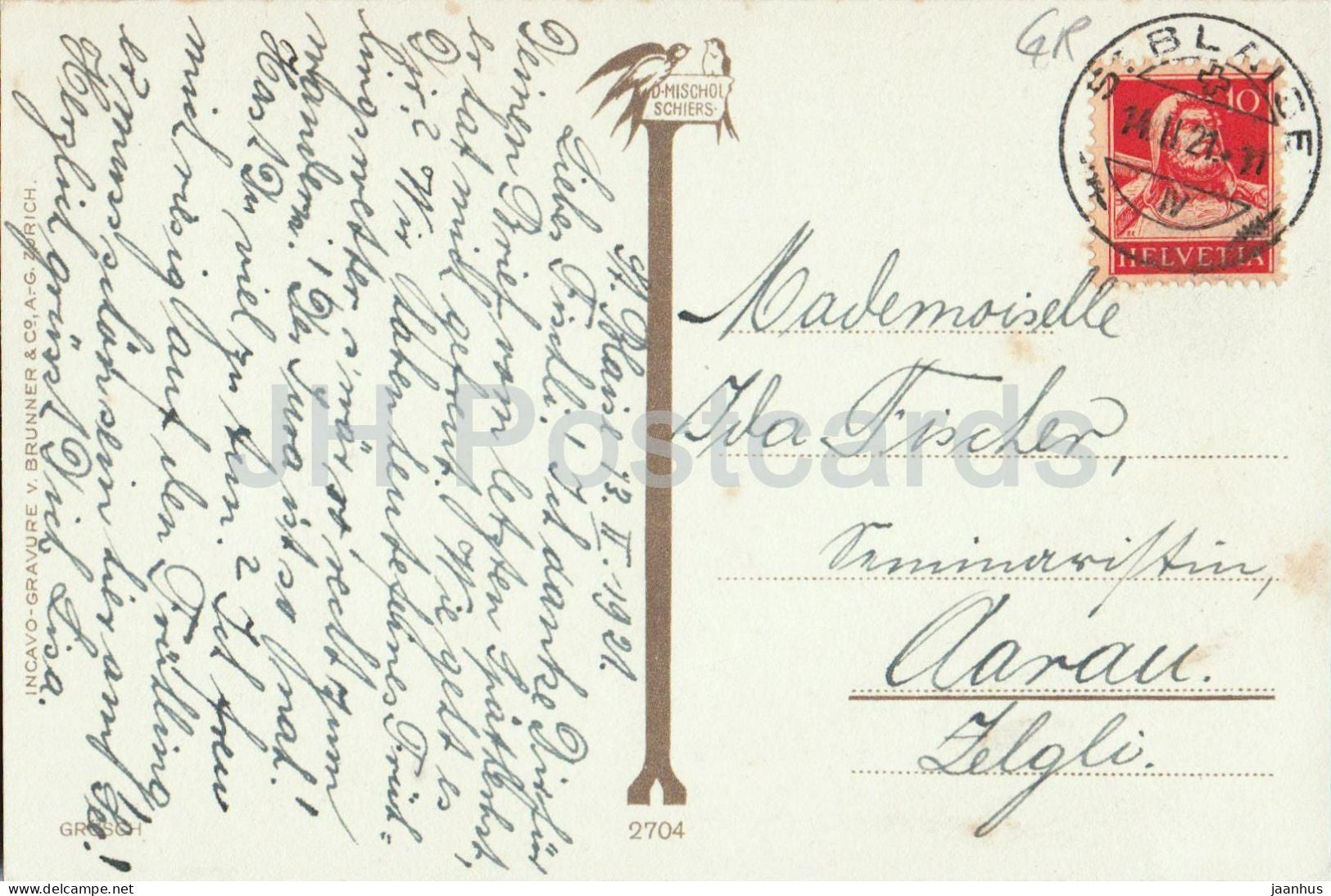 Grusch - Série Heimat - Paysage enneigé avec clôture et cabane - Scène d'hiver - Carte postale ancienne - 1921 - Suisse - Non utilisée