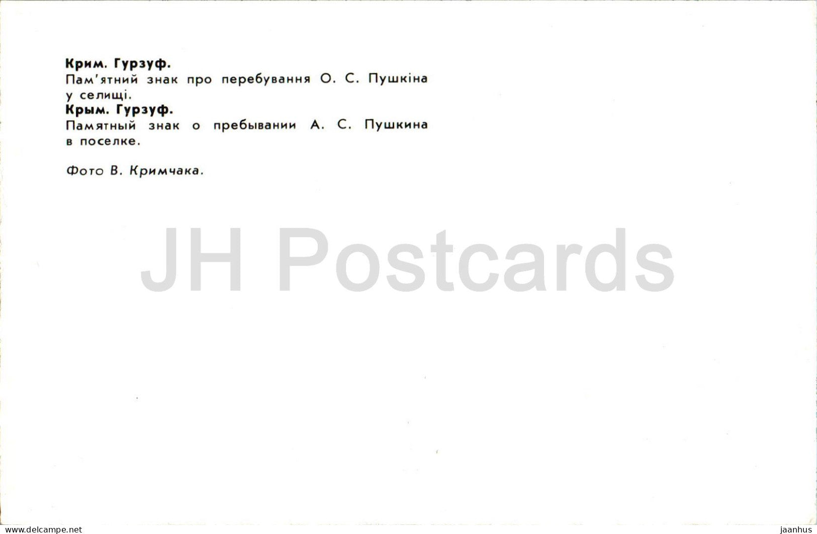 Gurzuf - signe commémoratif du séjour du poète russe Pouchkine à Gurzuf - monument - Crimée - 1983 - Ukraine URSS - inutilisé