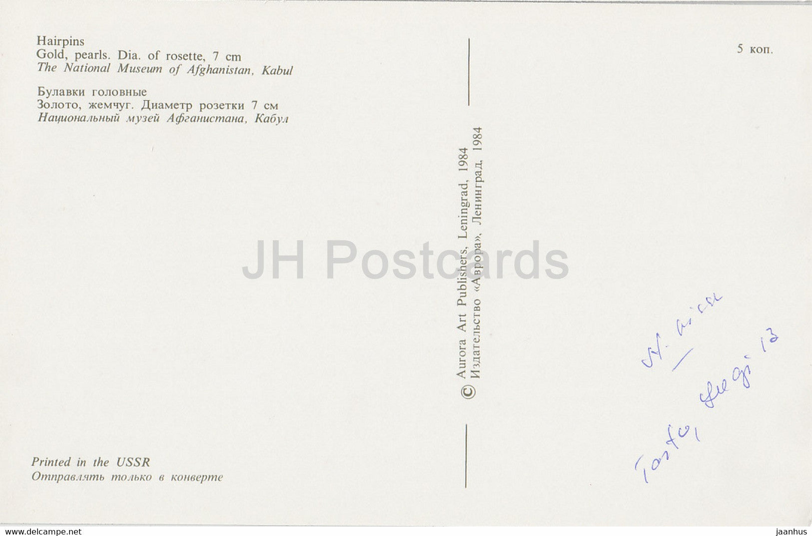 Épingles à cheveux - Musée national d'Afghanistan - archéologie - Or de Bactriane - 1984 - URSS Russie - utilisé