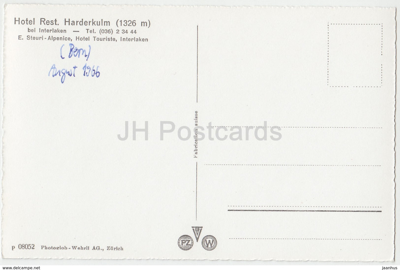 Harderkulm 1326 m avec Eiger Mönch et Jungfrau - Hôtel Rest. Harderkulm 1326 m - Suisse - 1966 - occasion