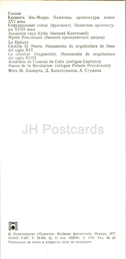 La Havane - Forteresse El Morro - cathédrale - Académie des Sciences - Musée de la Révolution - 1977 - Cuba - inutilisé