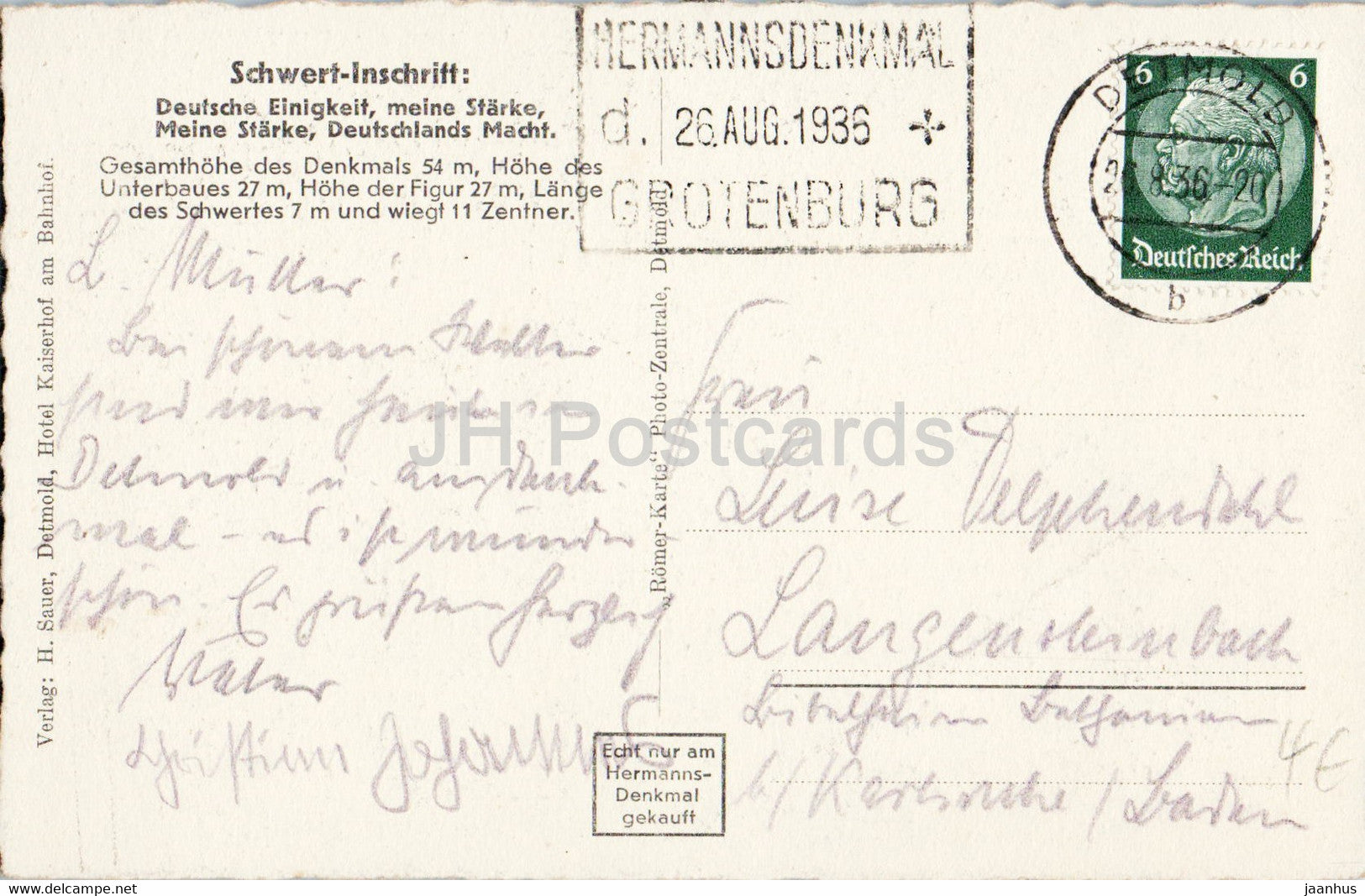 Hermannsdenkmal im Teutoburger Wald - monument - 1936 - carte postale ancienne - Allemagne - utilisé