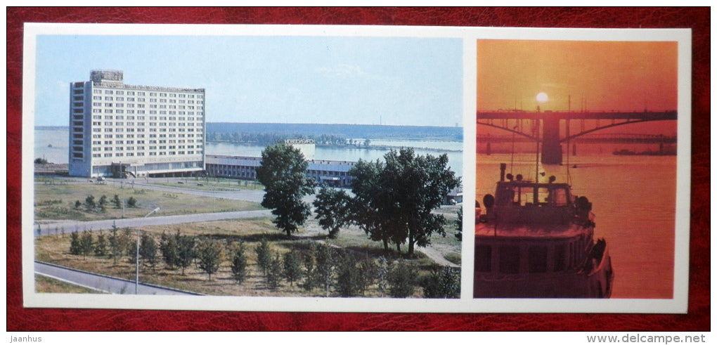 hôtel Ob - coucher de soleil sur la rivière Ob - bateau - Novossibirsk - 1977 - Russie URSS - inutilisé