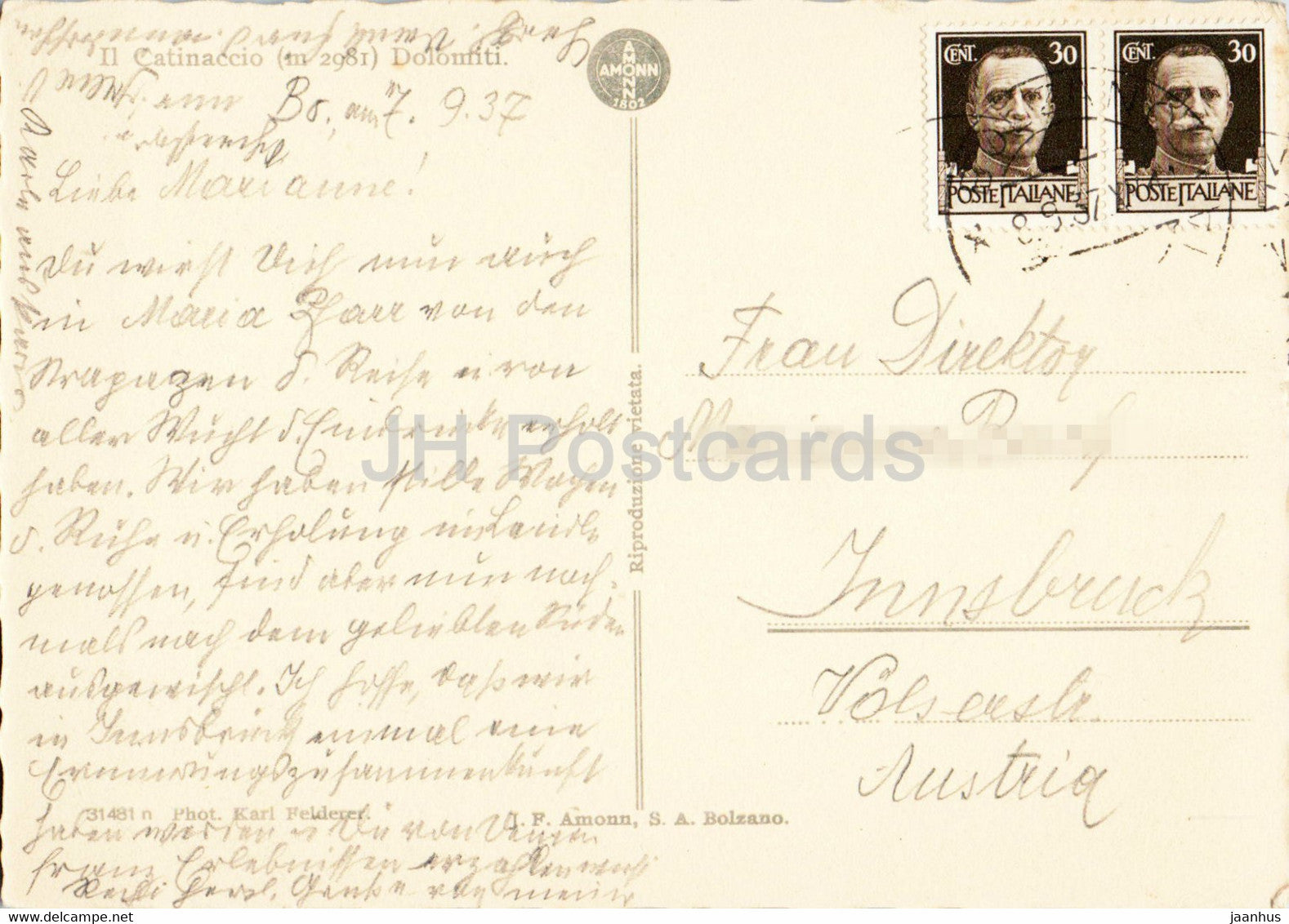 Il Catinaccio 2981 m - Dolomiti - carte postale ancienne - 1937 - Italie - utilisé