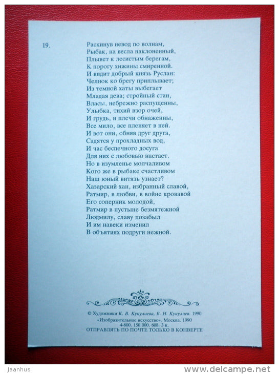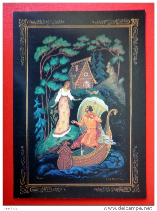 illustration de B. Kukuliyev - Bateau à voile - Ruslan et Ludmila - Poème de A. Pouchkine - 1990 - Russie URSS - inutilisé