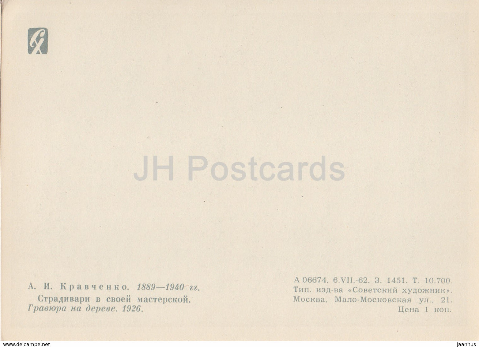 illustration de Kravchenko - Stradivari dans son atelier - violon - chello - 1962 - Russie URSS - inutilisé