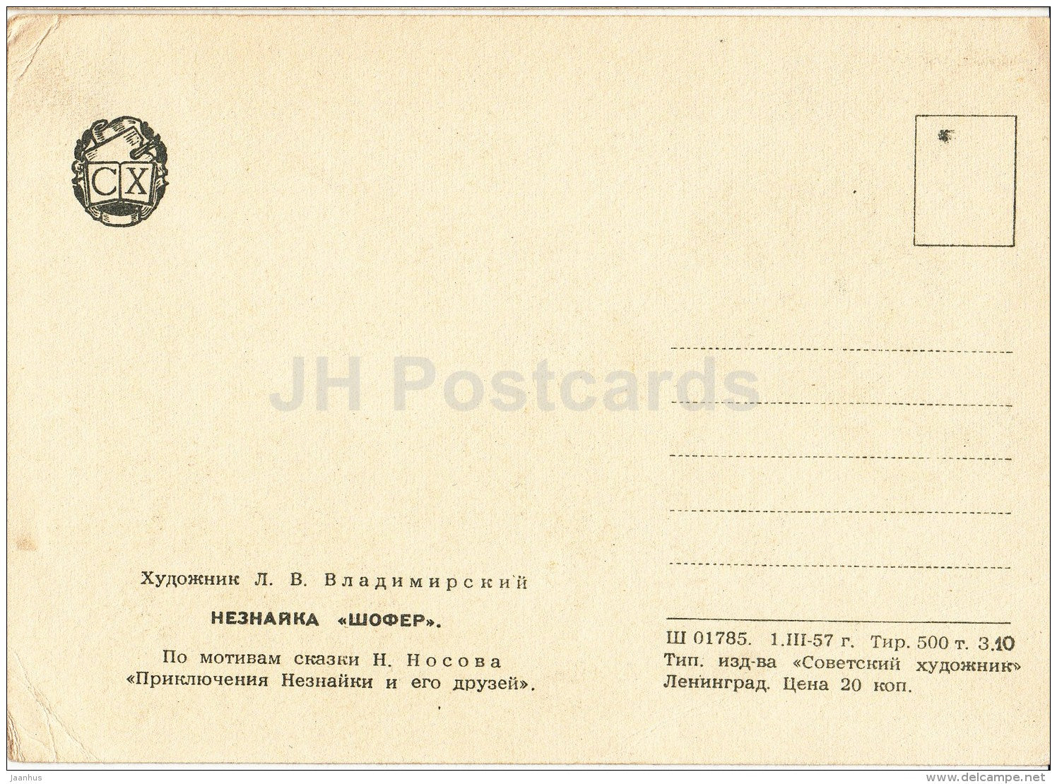 illustration de N. Nosova - Neznayka - chauffeur - 1957 - Russie URSS - inutilisé