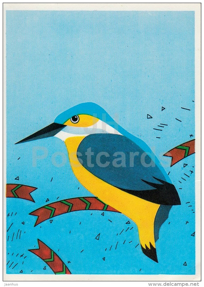 illustration de R. Miitel - Martin-pêcheur - oiseau - 1989 - Estonie URSS - inutilisé