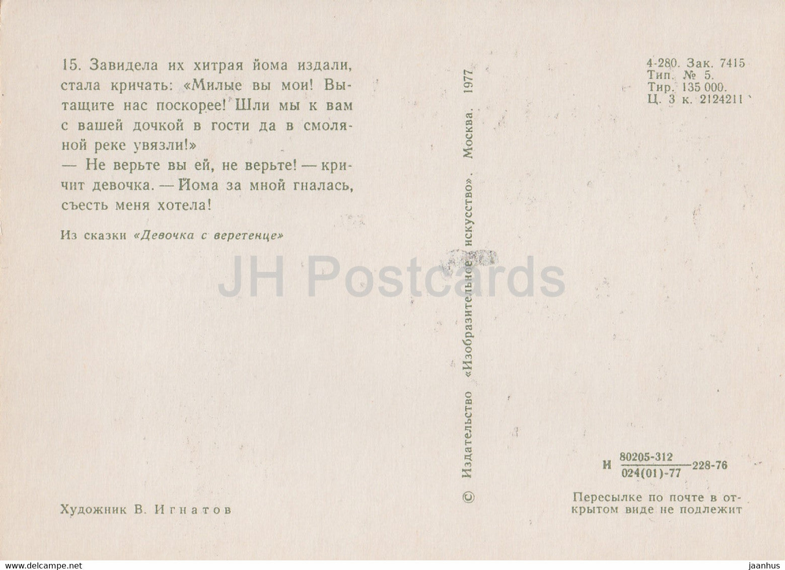 illustration de V. Ignatov - Fille au fuseau - Conte de fées Komi - 1977 - Russie URSS - inutilisé