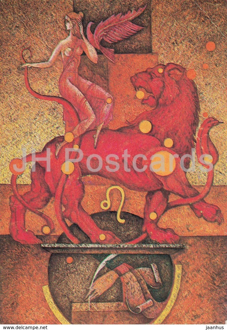illustration de V. Stanishevski - Lion - Signe du zodiaque - 1 - 1984 - Estonie URSS - inutilisé