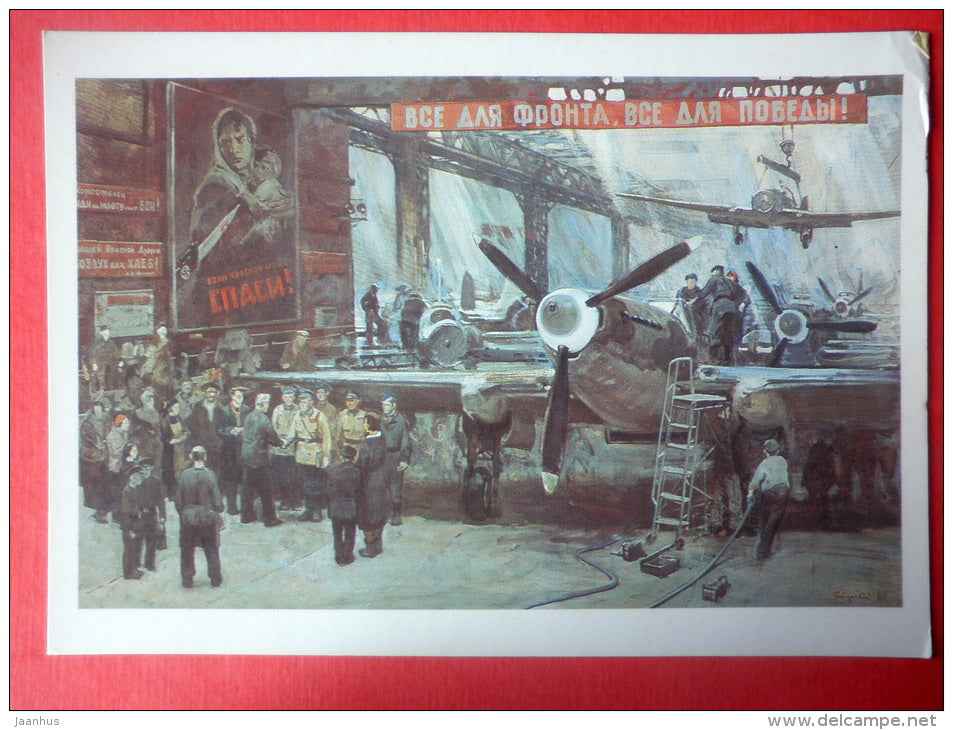 À l'arrière, 1984 par V. Sibirsky - Seconde Guerre mondiale - avion de guerre - avion - usine - Armée soviétique - 1988 - Russie URSS - inutilisé