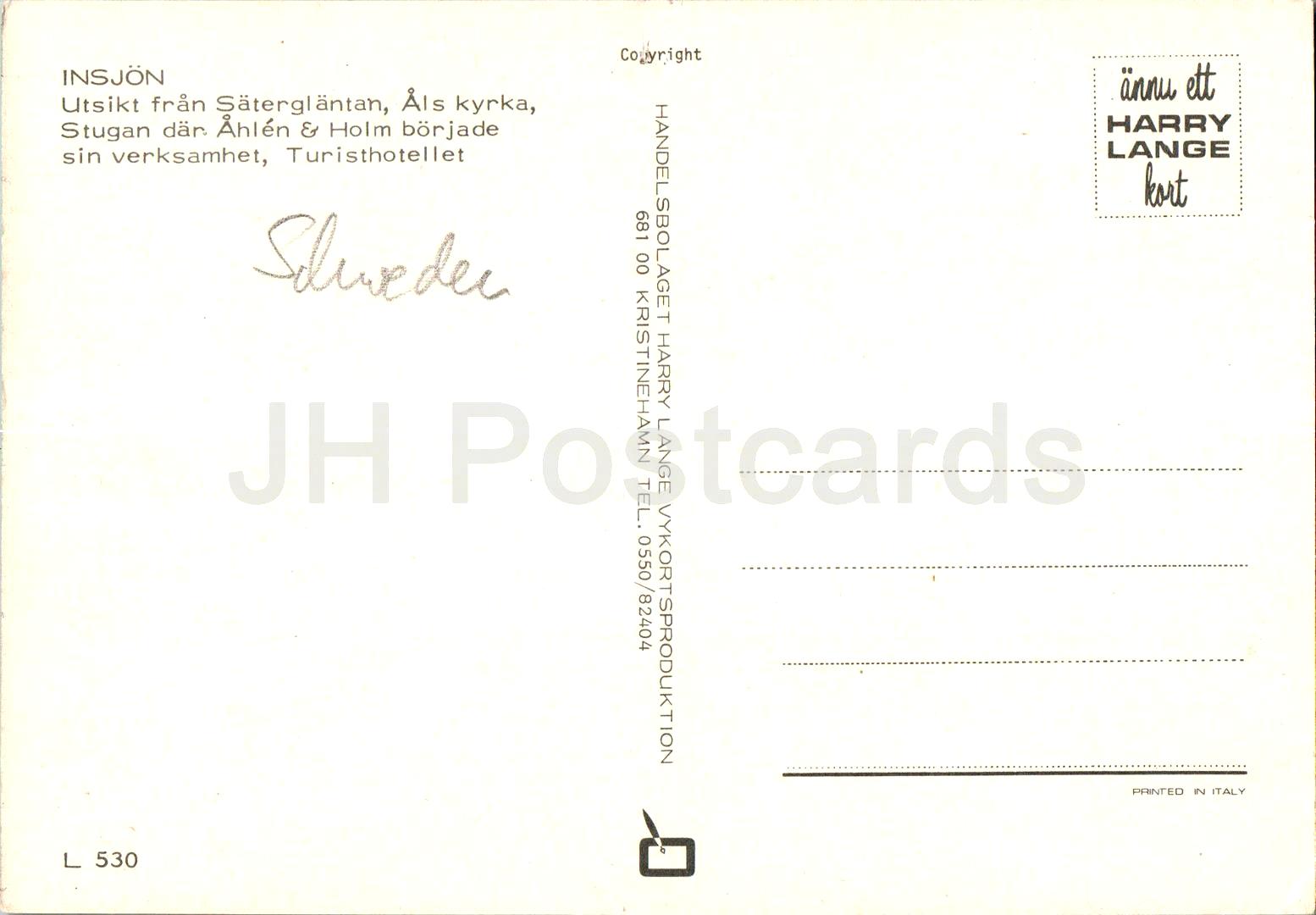 Insjon - Utskit fran Saterglantan - kyrka - turisthotellet - église - hôtel - multiview - L 530 - Suède - inutilisé
