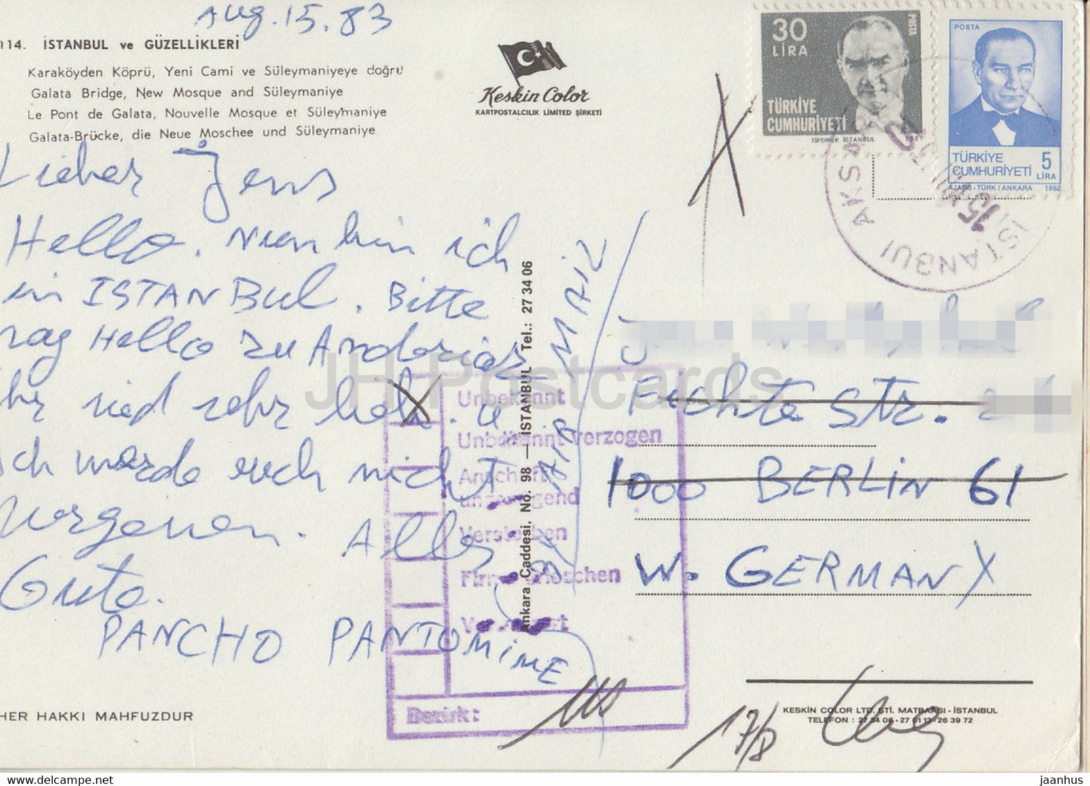 Istanbul - Pont de Galata - Nouvelle Mosquée et Suleymaniye - navire - voiture - 1983 - Turquie - utilisé