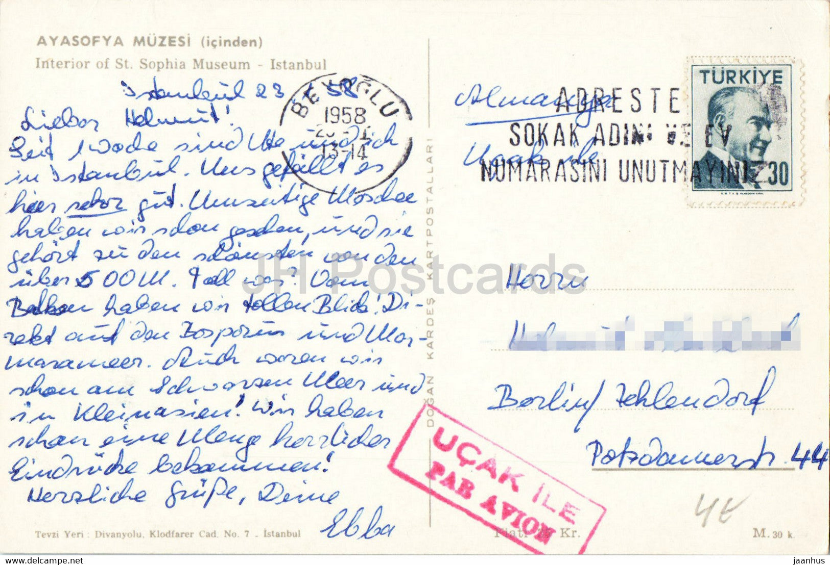 Istanbul - Intérieur du musée Sainte-Sophie - carte postale ancienne - 1958 - Turquie - utilisé