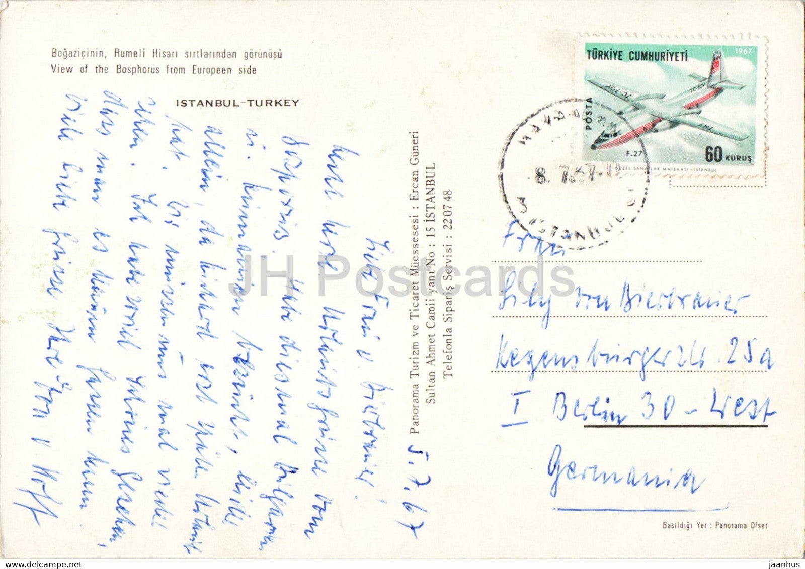 Istanbul - Vue du Bosphore du côté européen - navire - 1967 - Turquie - utilisé