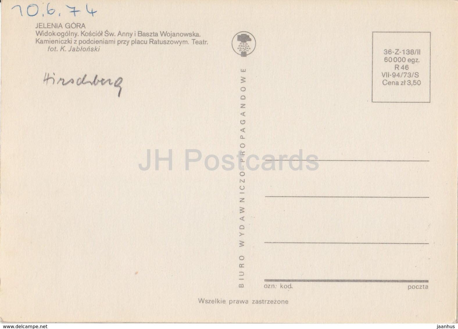Jelenia Gora - vue générale - Tour Wojanowska - Place de la ville - théâtre - multiview - Pologne - 1974 - utilisé