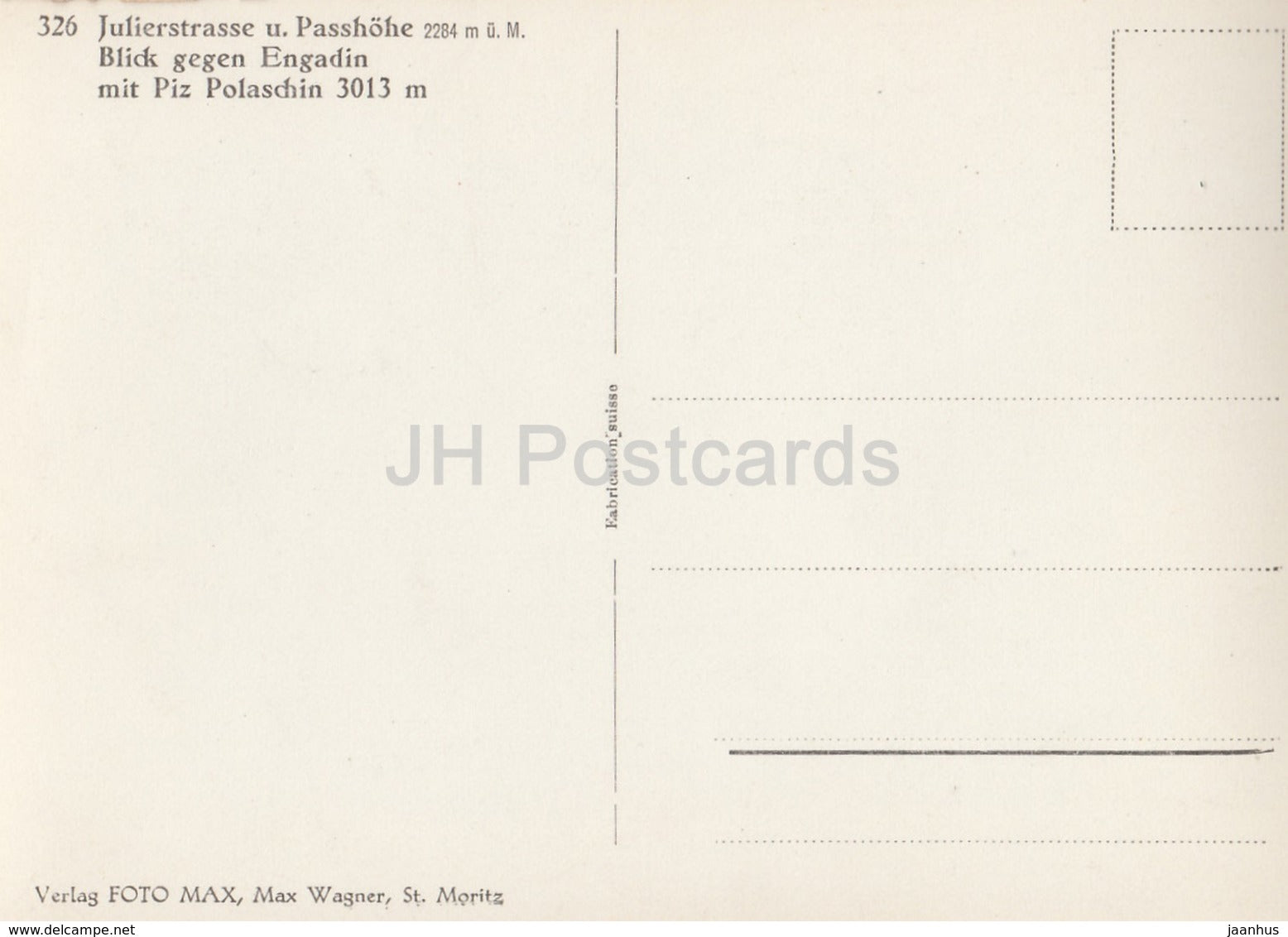 Julierstrasse u. Passhohe 2284 m - Blick gegen Engandin mit Piz Polaschin - 326 - Suisse - carte postale ancienne - inutilisée