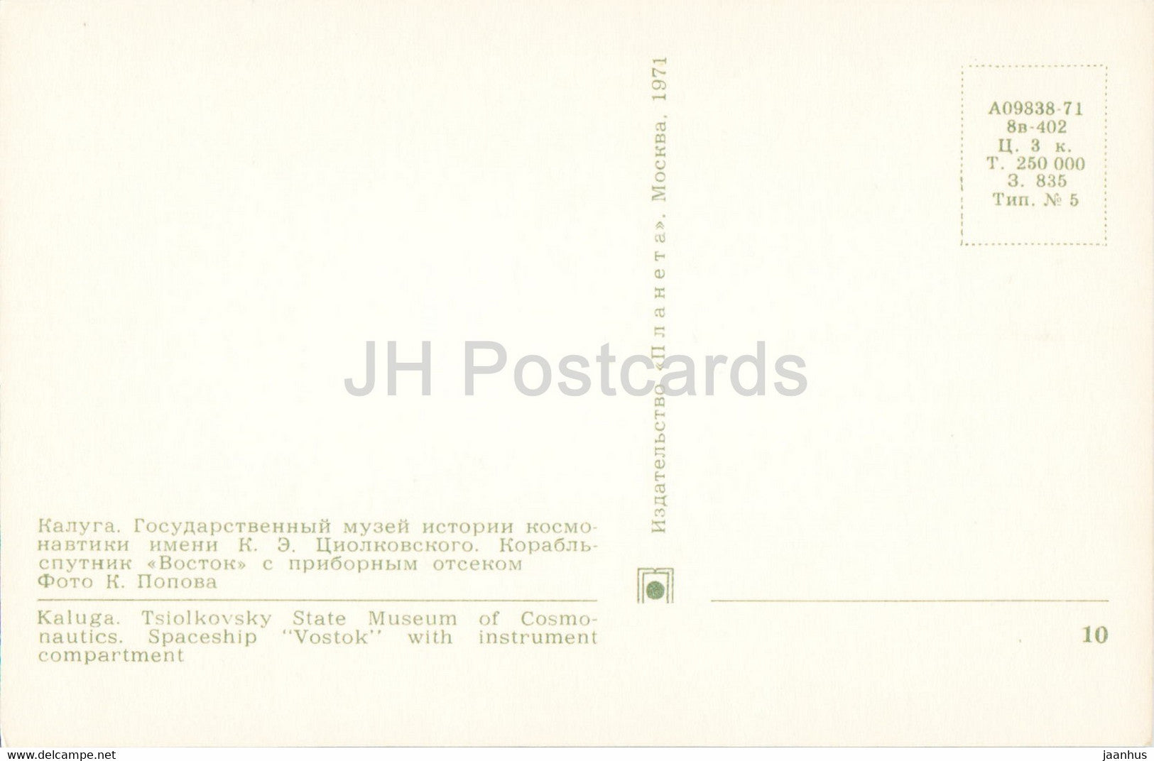 Kaluga - Musée national d'astronautique Tsiolkovsky - Vaisseau spatial Vostok - 1971 - Russie URSS - inutilisé