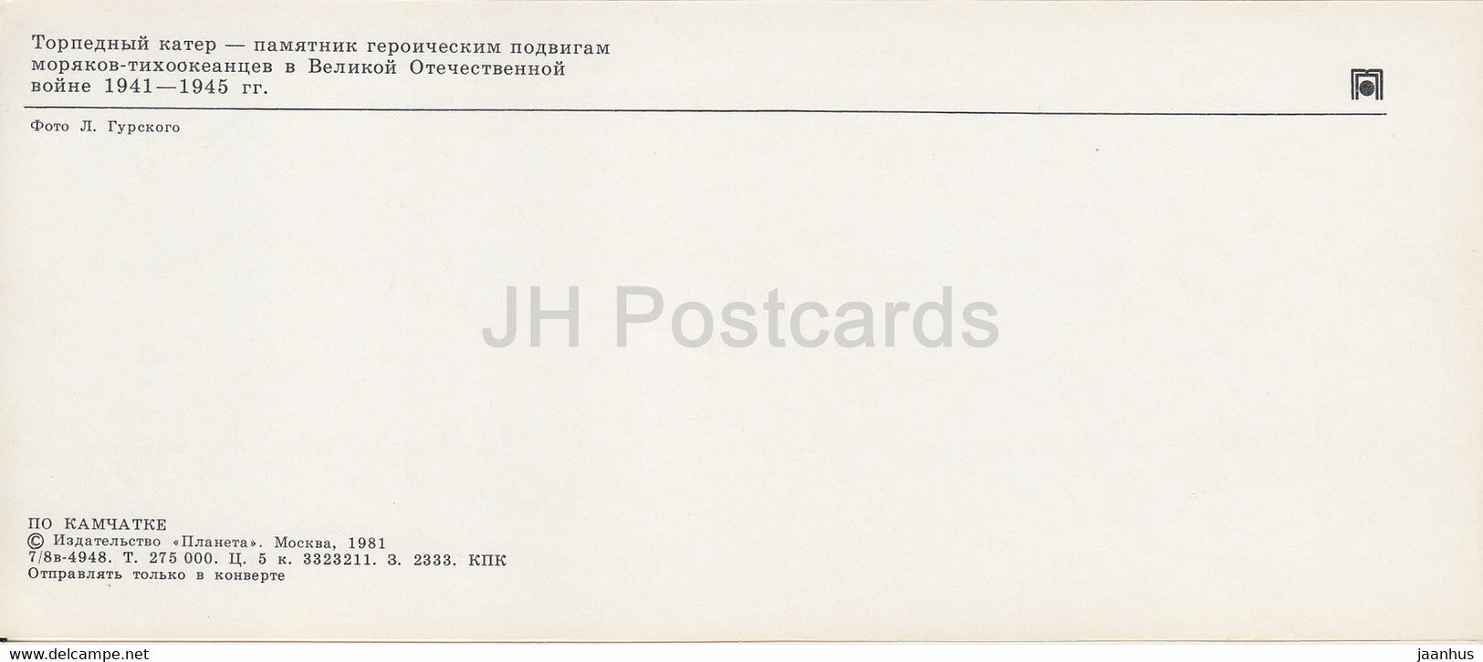 Kamchatka - torpilleur - mémorial aux actes héroïques des marins du Pacifique pendant la Seconde Guerre mondiale - 1981 - Russie URSS - inutilisé
