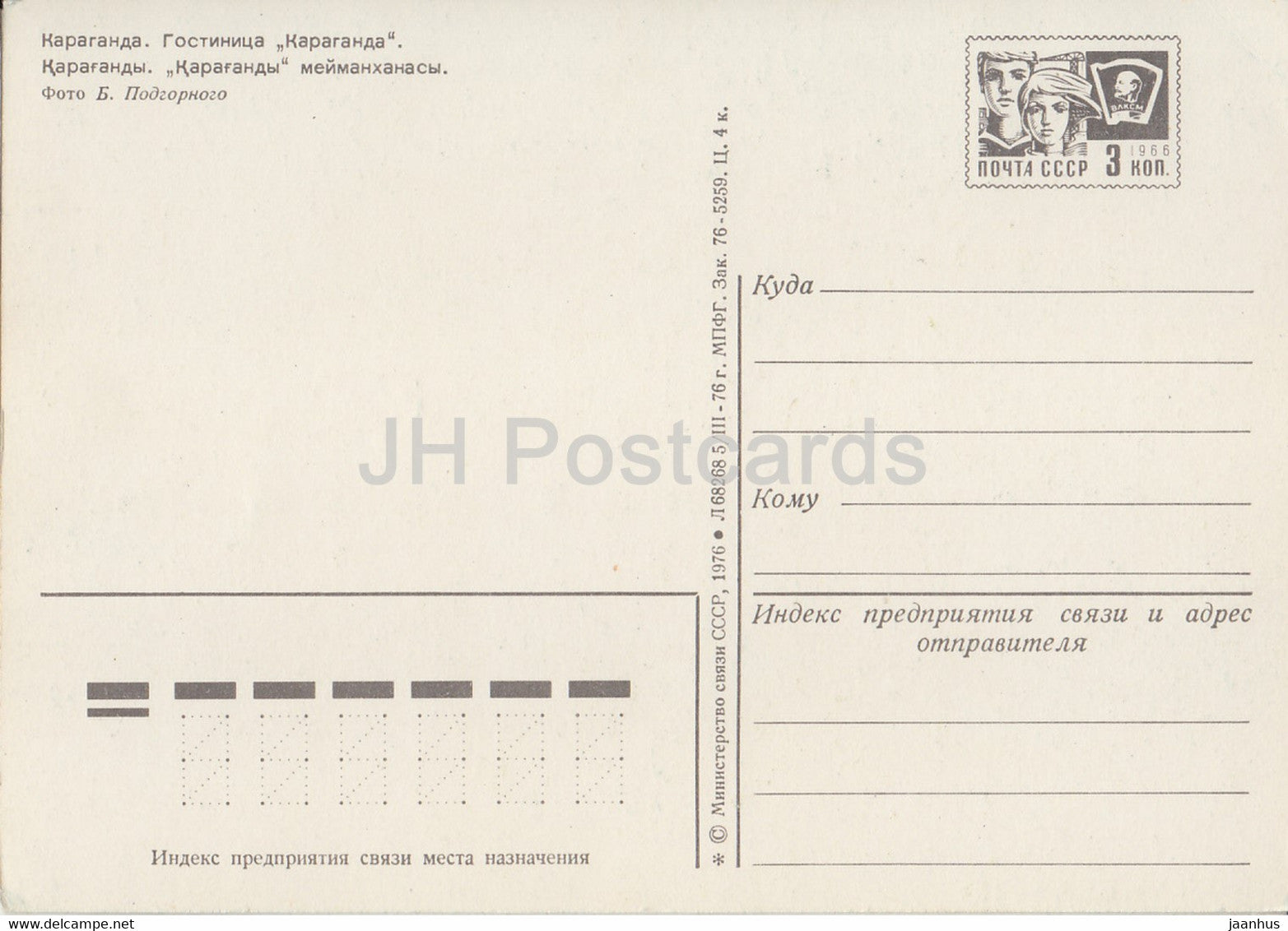 Karaganda - Karagandy - hôtel - bus - entier postal - 1976 - Kazakhstan URSS - inutilisé