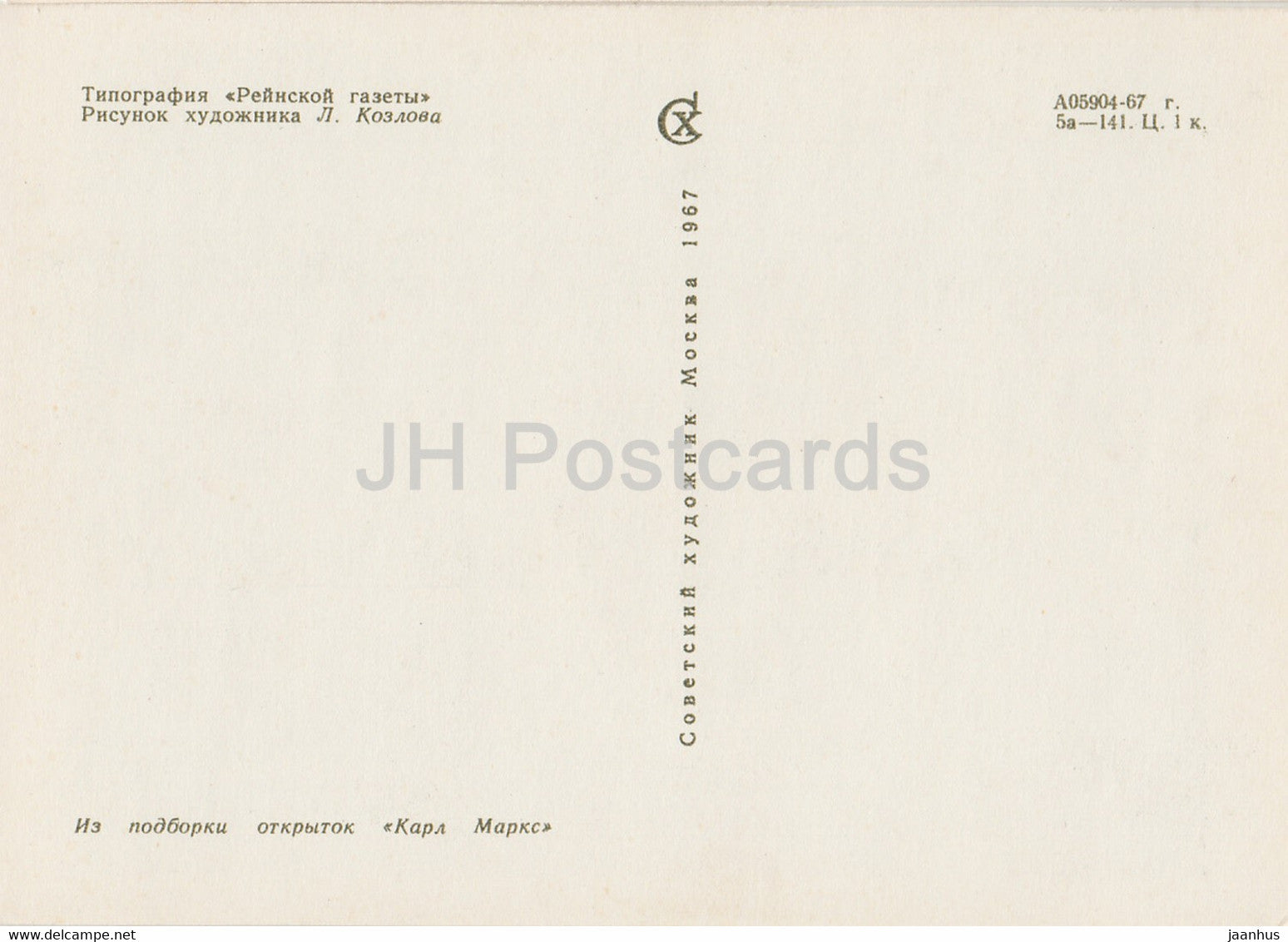 Karl Marx - imprimerie du journal Nouveau Rhin - 1967 - Russie URSS - inutilisé