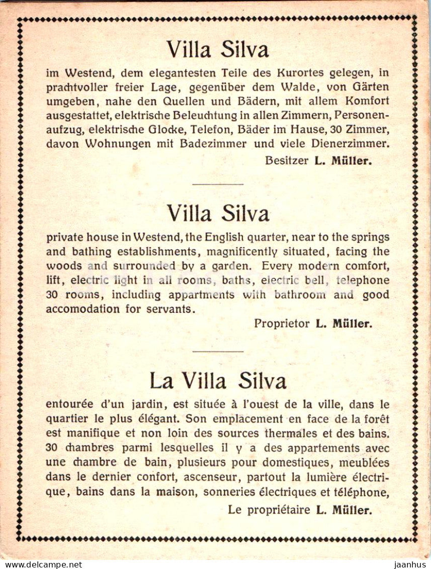 Karlsbad - Villa Silva - Westend - hôtel - carte postale ancienne - République tchèque - utilisé