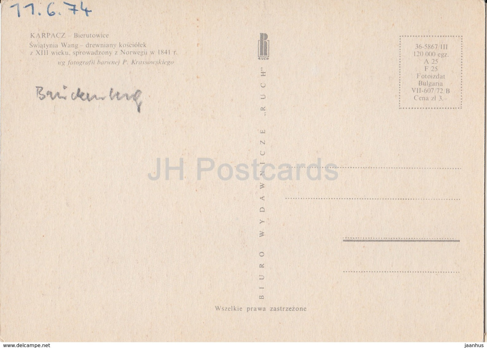 Karpacz - Bierutowice - Swiatynia Wang - 1974 - Pologne - occasion