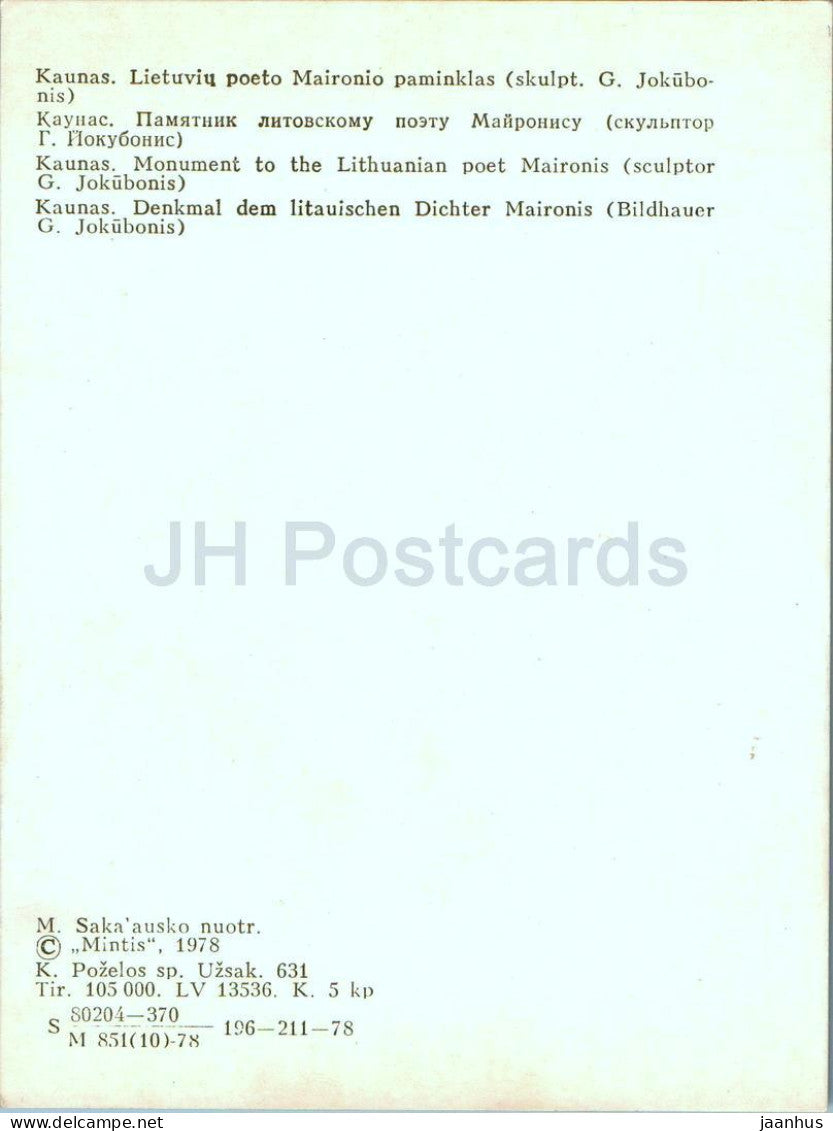 Kaunas - Monument au poète lituanien Maironis - 1978 - Lituanie URSS - inutilisé