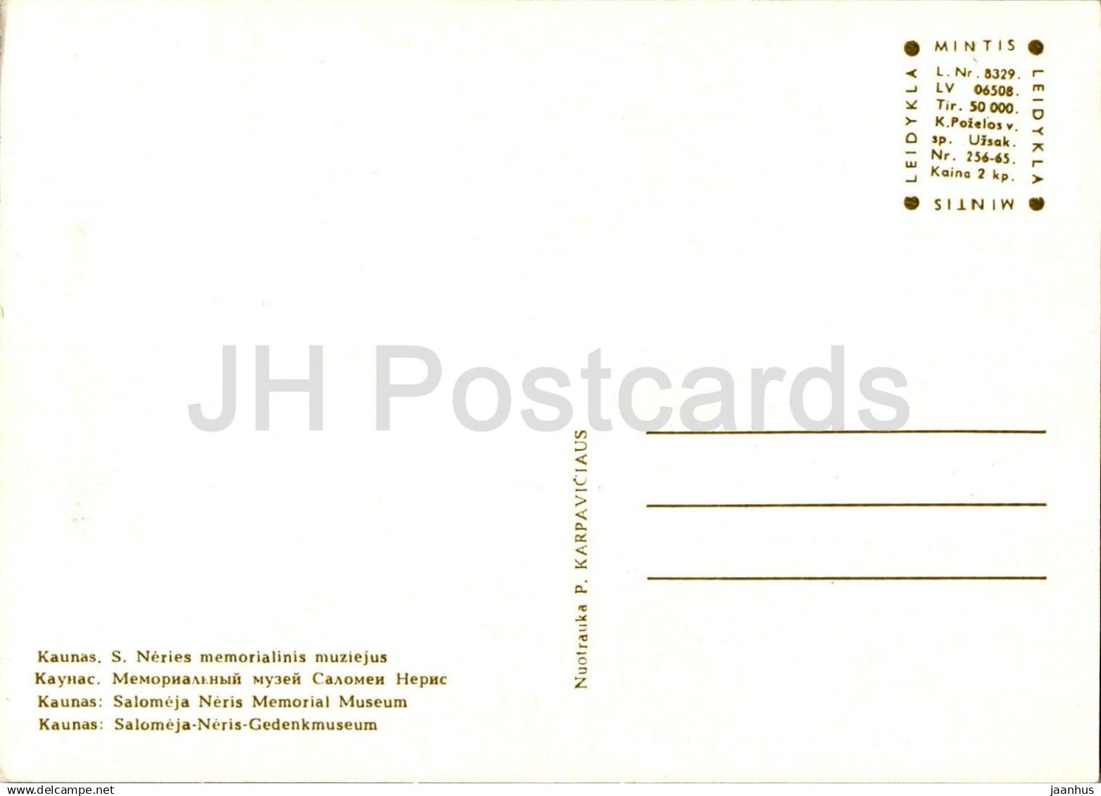 Kaunas - Musée commémoratif Salomeja Neris - Lituanie URSS - inutilisé