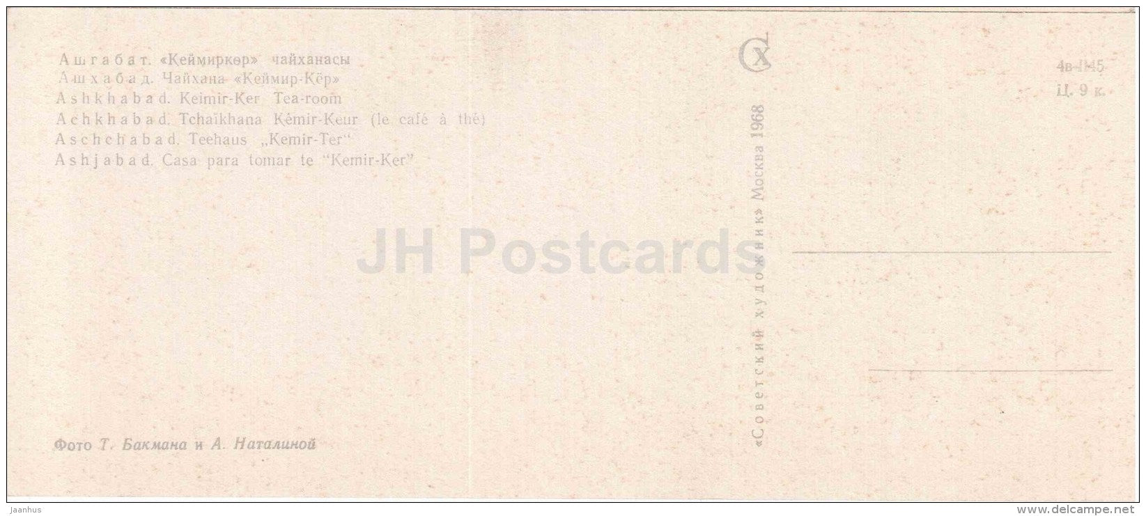 Salon de thé Keimir-Ker - Ashkhabad - Ashgabat - 1968 - Turkménistan URSS - inutilisé