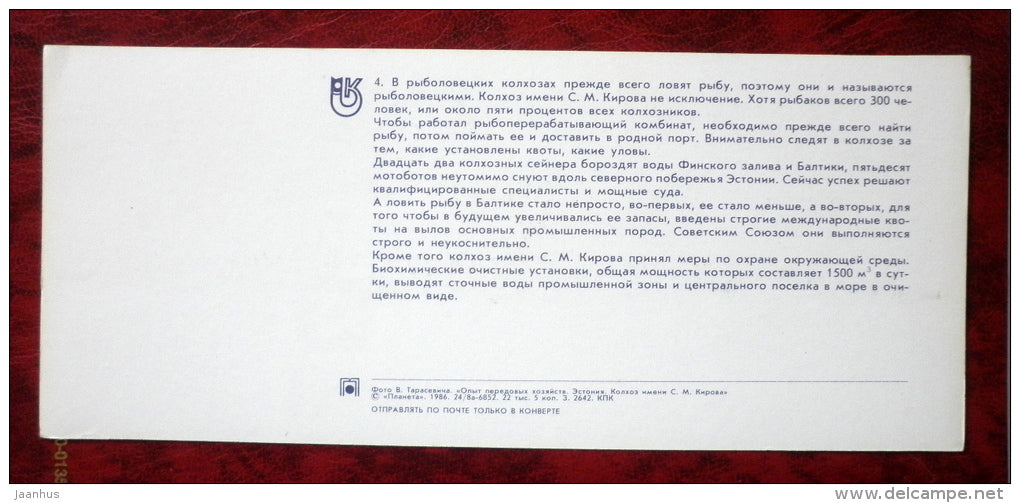 Ferme collective Kirov - bateau de pêche - 1986 - Estonie - URSS - inutilisé