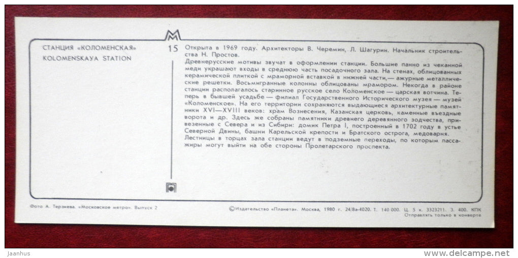 Station Kolomenskaya - Métro de Moscou - métro - Moscou - 1980 - Russie URSS - inutilisé