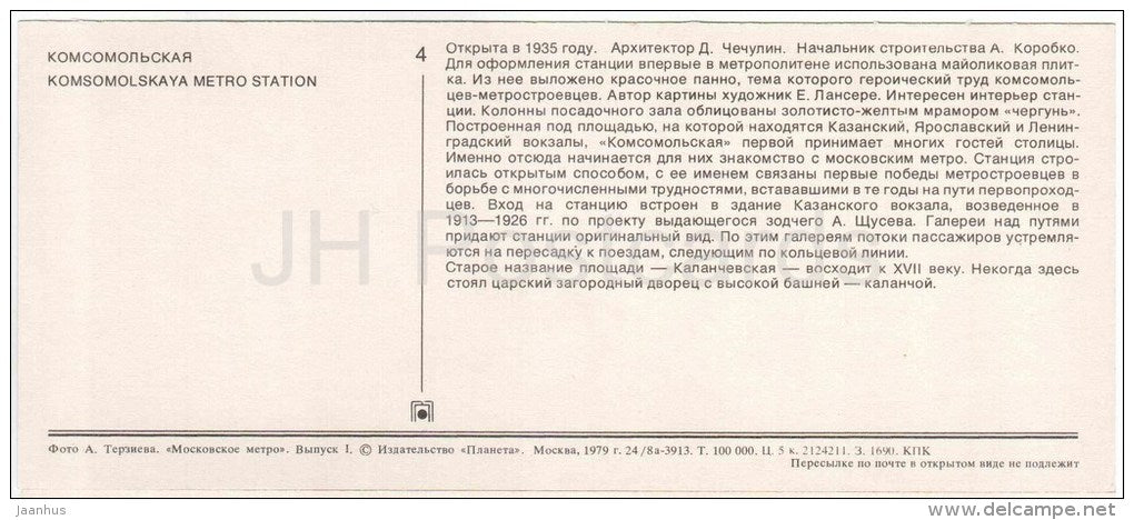 Station de métro Komsomolskaya - métro - Moscou - 1979 - Russie URSS - inutilisé