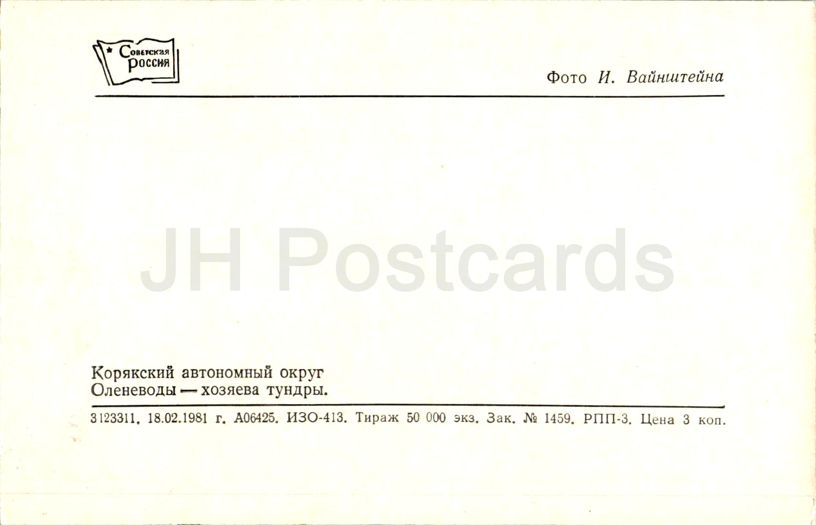 District autonome de Koryak - Éleveurs de rennes - animaux - rennes - costume folklorique - 1988 - Russie URSS - inutilisé