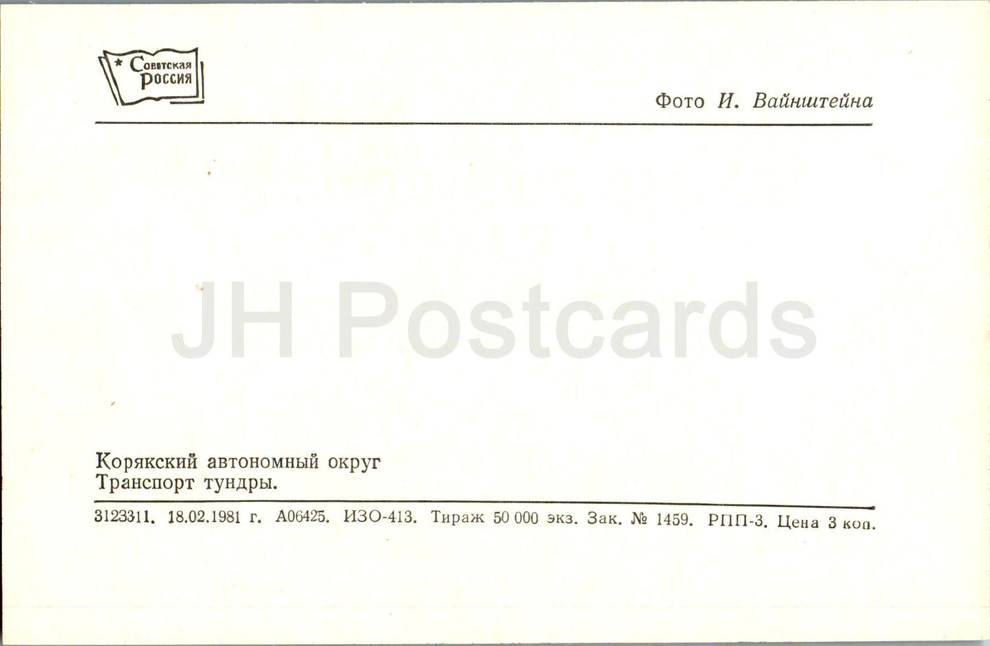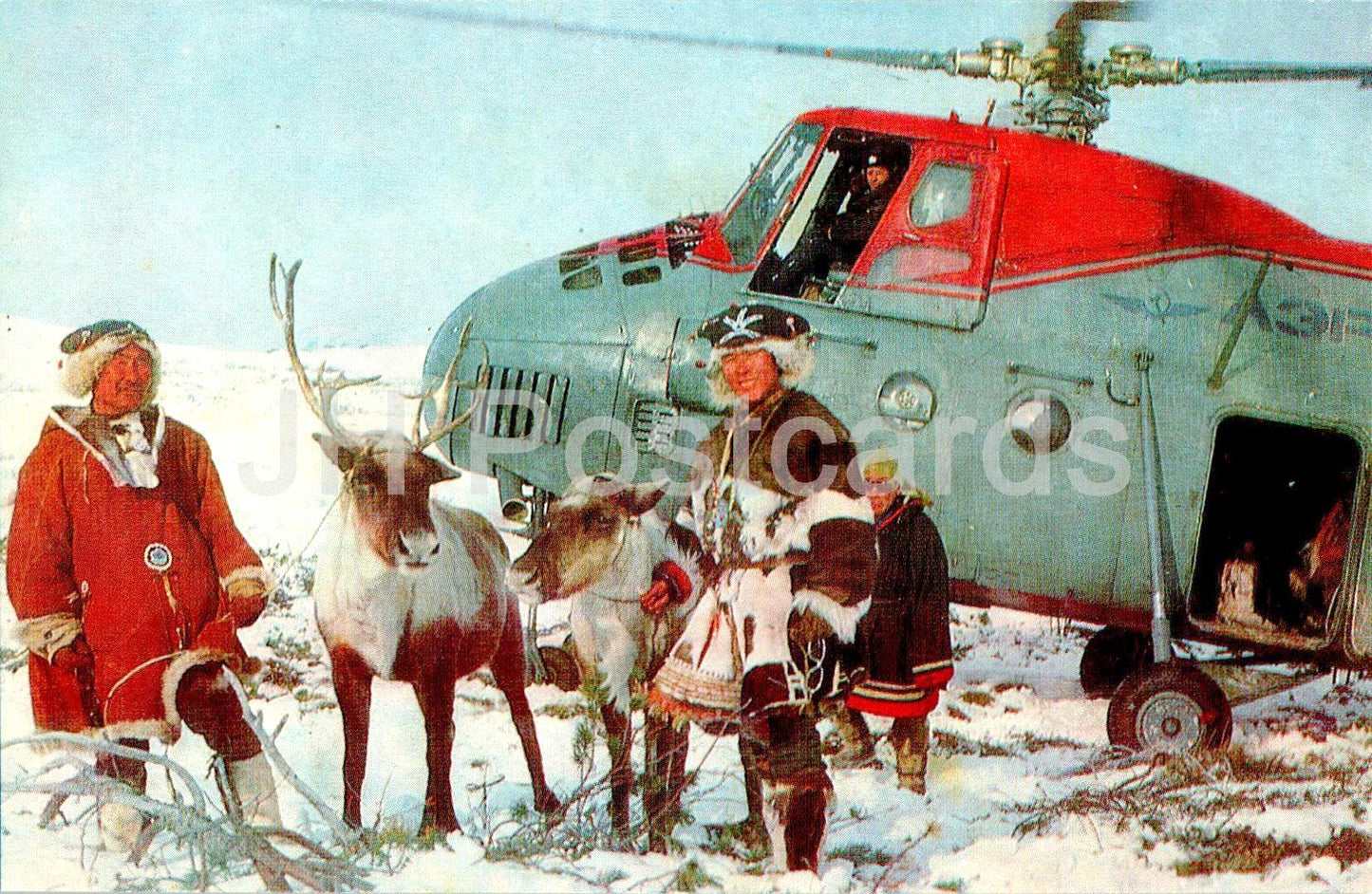 District autonome de Koryak - Transport dans la toundra - animaux - rennes - hélicoptère - 1988 - Russie URSS - inutilisé