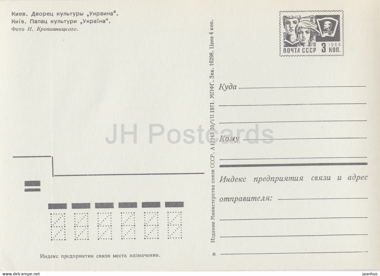 Kiev - Kiev - Palais de la Culture Ukraina - trolleybus - voiture Volga - entier postal - 1971 - Ukraine URSS - inutilisé