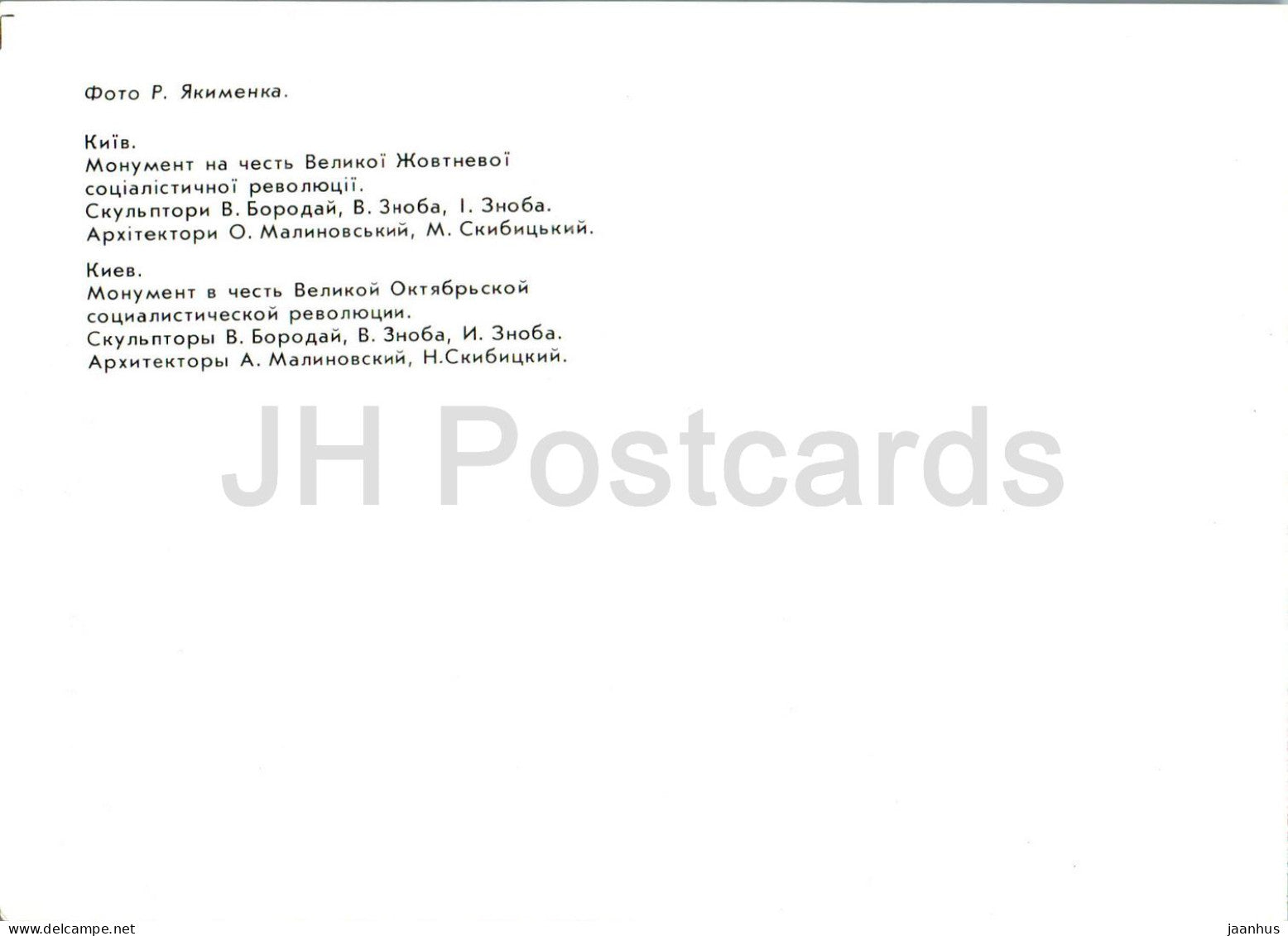 Kiev - Kiev - monument en l'honneur de la Grande Révolution socialiste d'Octobre - 1989 - Ukraine URSS - inutilisé