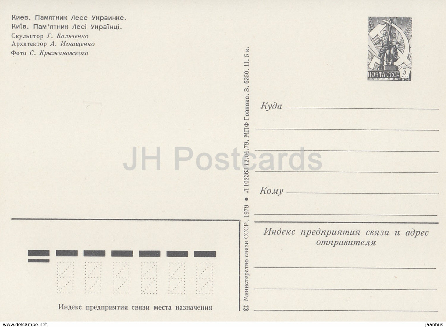 Kiev - Kiev - monument à l'écrivain ukrainien Lesya Ukrainka - entier postal - 1979 - Ukraine URSS - inutilisé