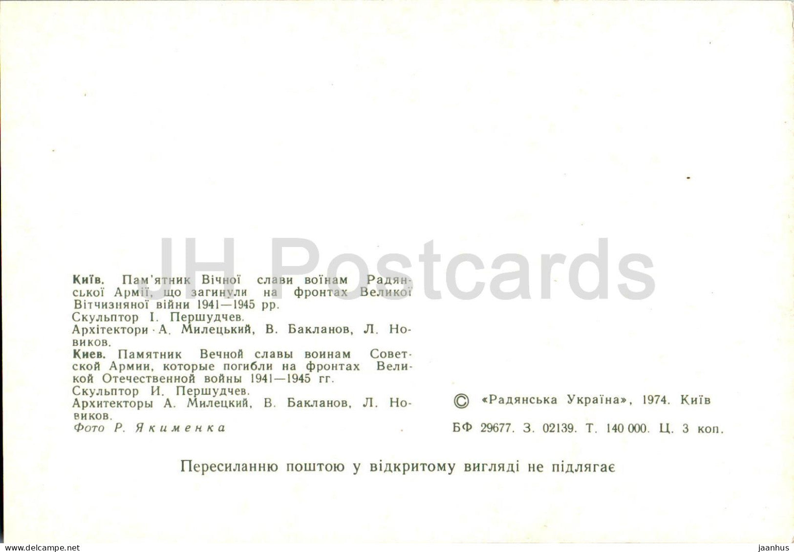 Kiev - monument de la Gloire éternelle - tué pendant la Seconde Guerre mondiale - monument militaire - 1974 - Ukraine URSS - inutilisé