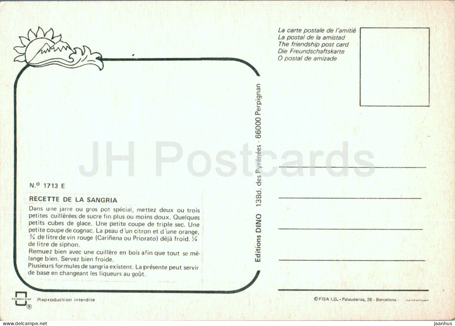 La Sangria - boisson - recette - 1713 - Espagne - inutilisée