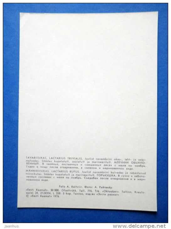 Lactarius trivialis - Milkcap - Lactarius rufus - champignons - 1976 - Estonie URSS - inutilisé