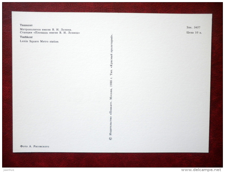 Station de métro Place Lénine - Tachkent - 1988 - Ouzbékistan URSS - inutilisée