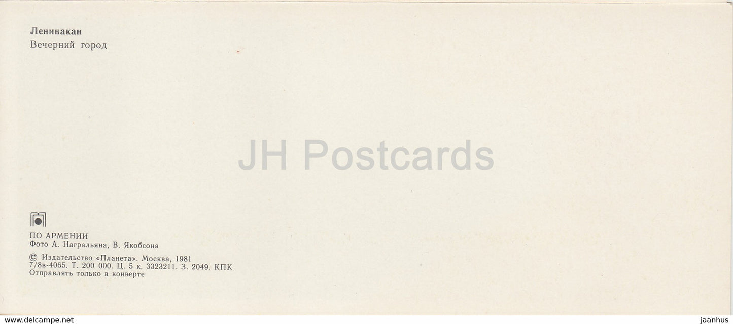 Leninakan Gyumri - Evening City - 1981 - Arménie URSS - inutilisé