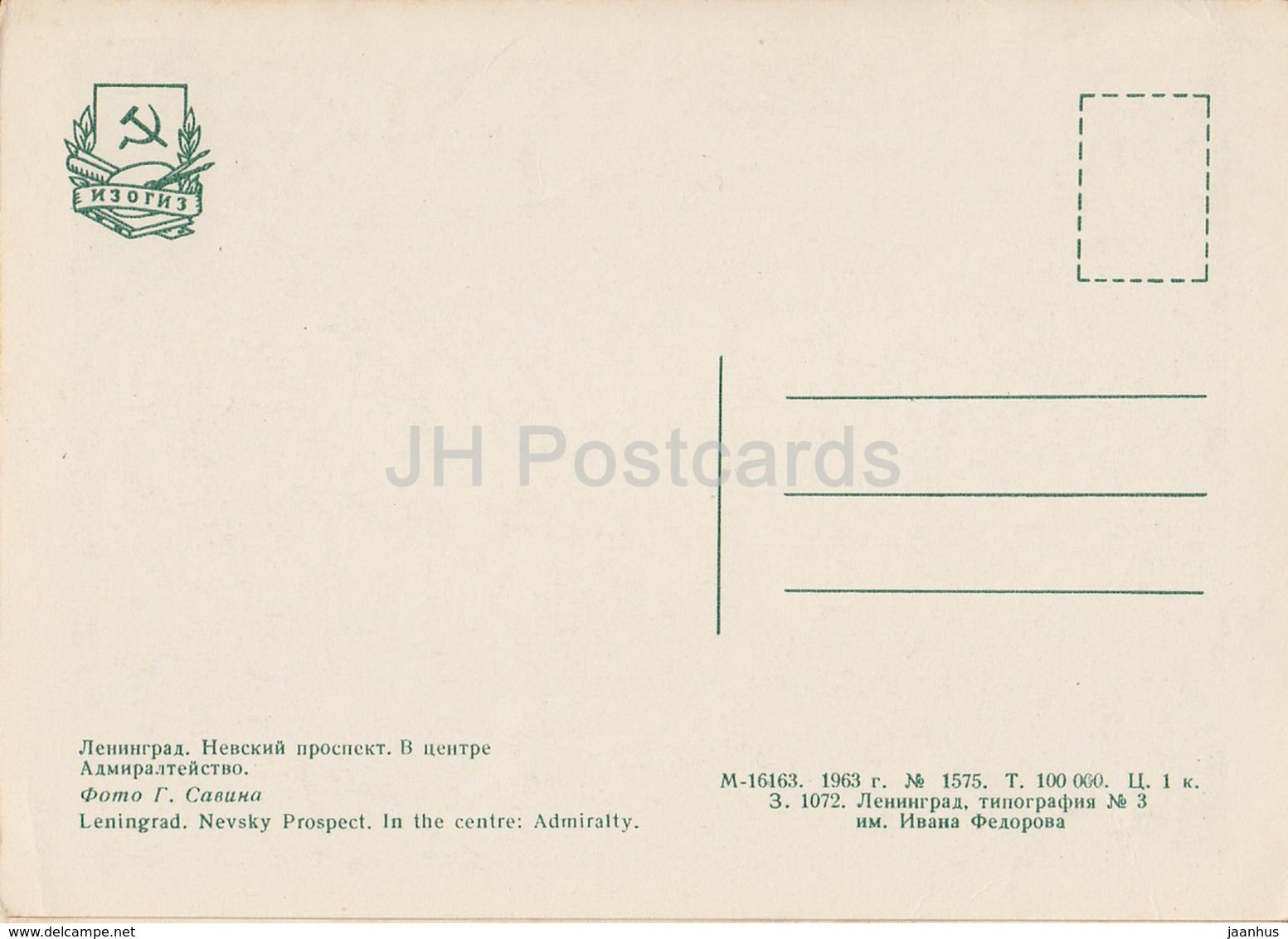 Leningrad - Saint-Pétersbourg - Perspective Nevski - Amirauté - 1963 - Russie URSS - inutilisé