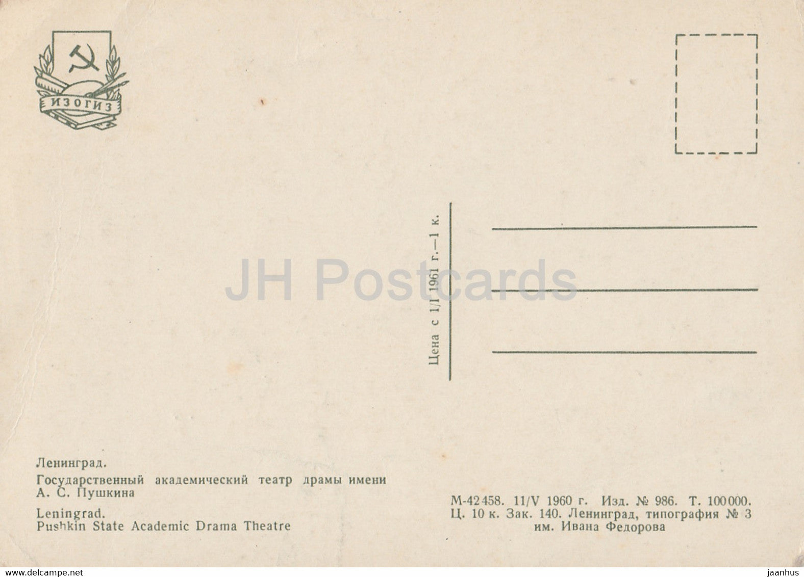 Leningrad - Saint-Pétersbourg - Théâtre dramatique académique d'État Pouchkine - Russie URSS - inutilisé