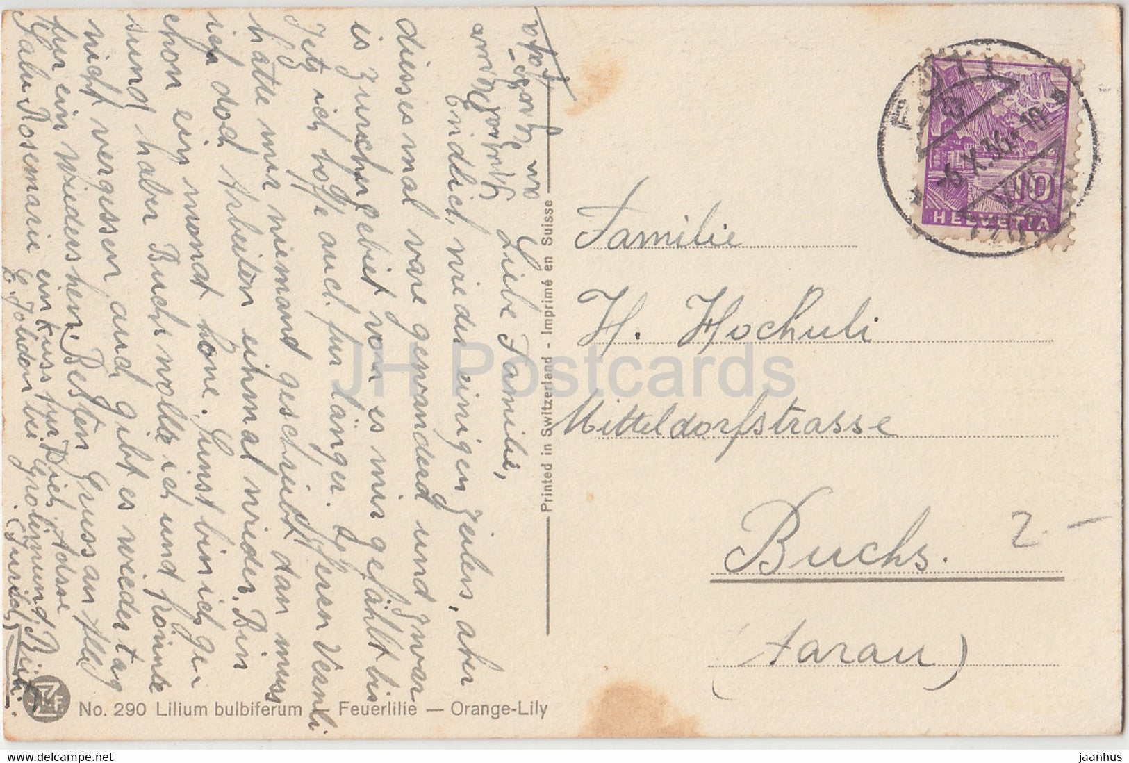 Lilium bulbiferum - Feuerlilie - Orange Lily - fleurs - 290 - carte postale ancienne - 1936 - Suisse - utilisé