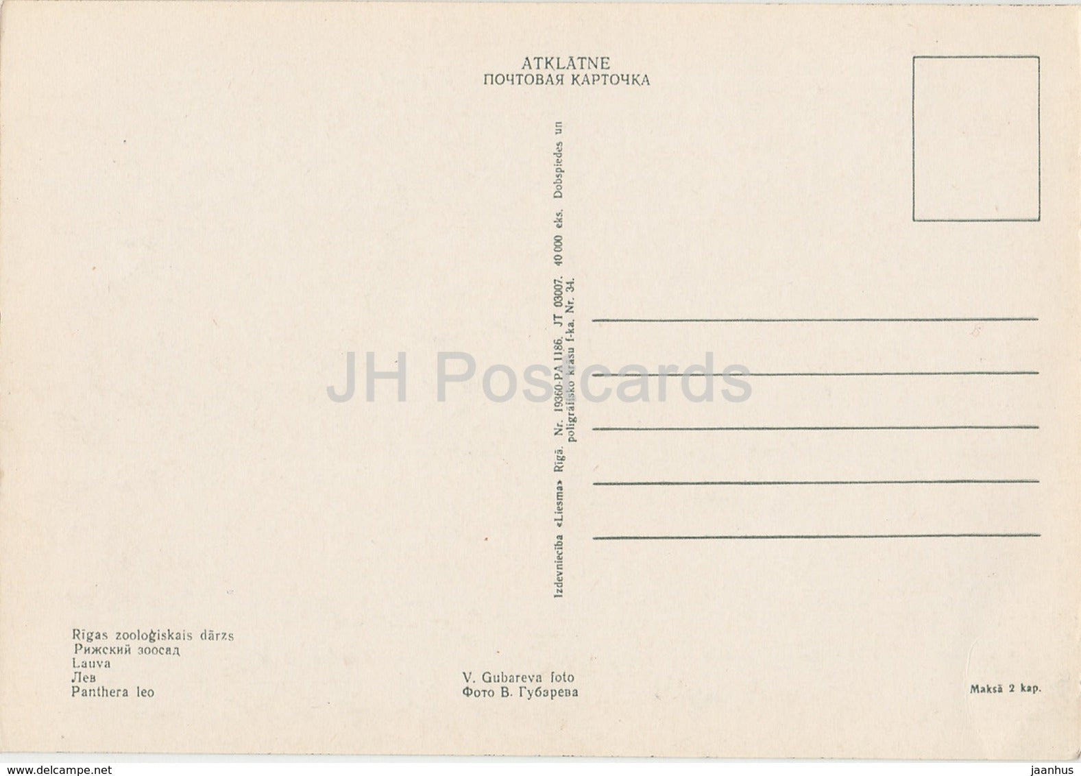 Lion - Panthera Leo - Zoo de Riga - carte postale ancienne - Lettonie URSS - inutilisé