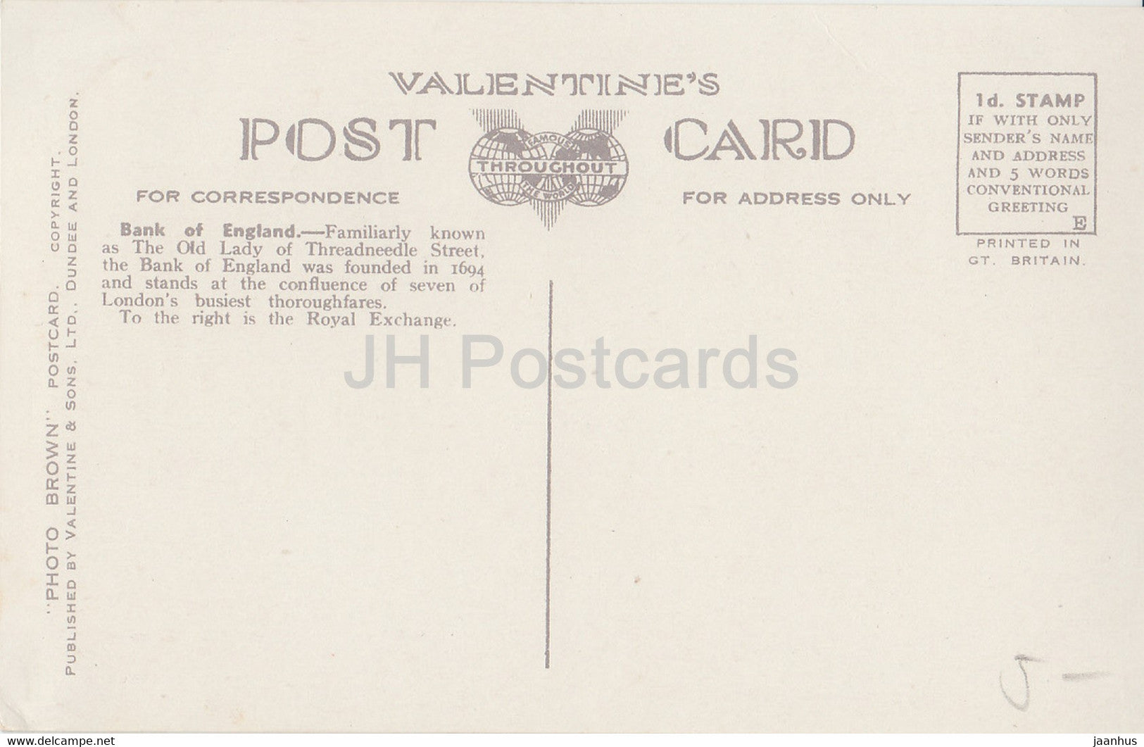 Londres - Banque d'Angleterre et Royal Exchange - voiture - bus - 7872 - carte postale ancienne - Angleterre - Royaume-Uni - inutilisé