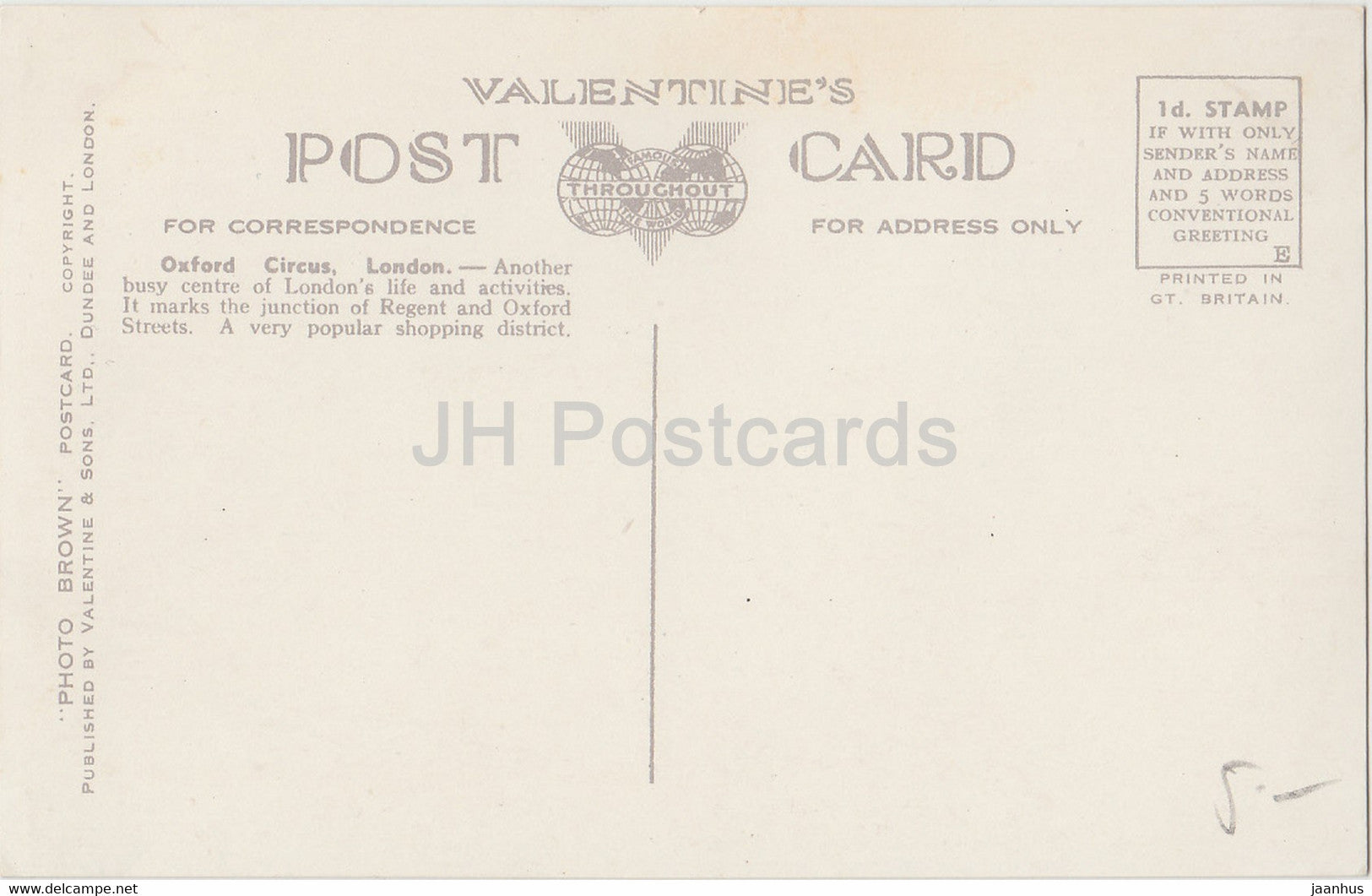 Londres - Oxford Circus - Valentine - voiture - bus - 220152 - carte postale ancienne - Angleterre - Royaume-Uni - inutilisé